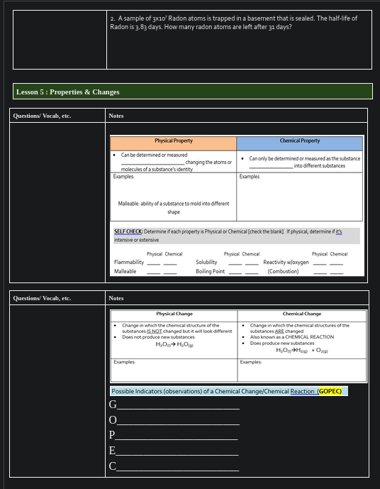 physical changes:breaking dissolving distilling cutting changes in state: boiling, condensing, melting & freezing