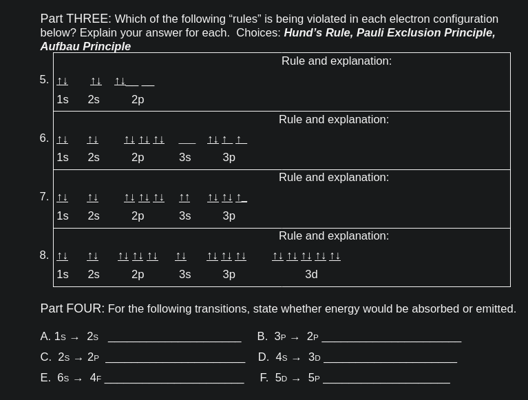 Pauli exclusion principle: in 3s the arrows both point up which is no good.