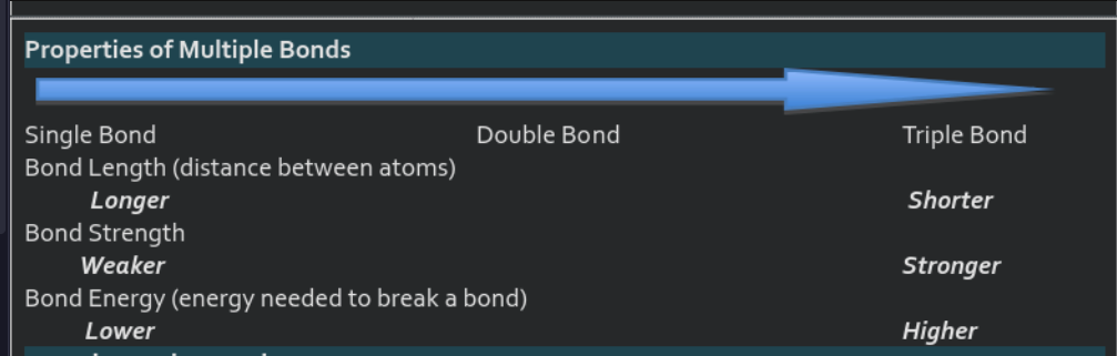 as you go into double bonds and triple bonds, the bonds get stronger and shorter.