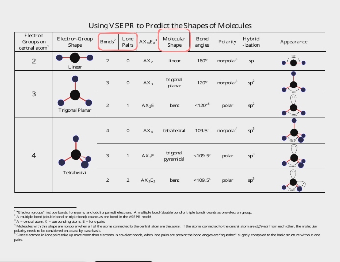 lone pairs are electrons too, and must be taken into account when determining molecule shape since they repel the other bonds as well. ONLY take into account lone pairs around the CENTRAL atom, not the outside ( terminal ) atoms