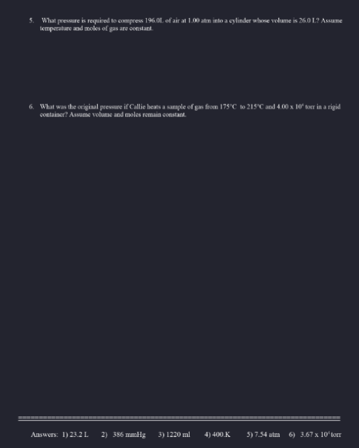 414 Hg = P1 25C+ 273 = 298 = T1 278 = T2 x = P2
