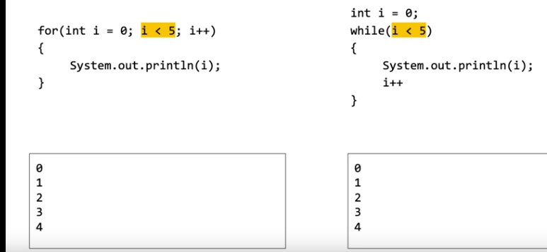 does not have to be increase by 1 for( int i = 1; i < 3 ; i += 5 ) increases by 5 each time ^ for( int i = 1; i < 3 ; i— ) decreases by 1 each time ^