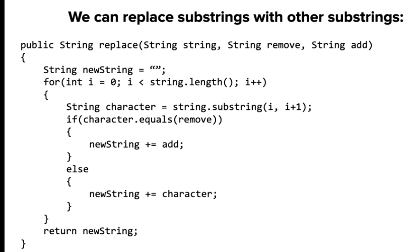 we can also use charAt(int index) to get a character at a specific index in a string charAt() is not on the ap exam so use substring so you learn it good