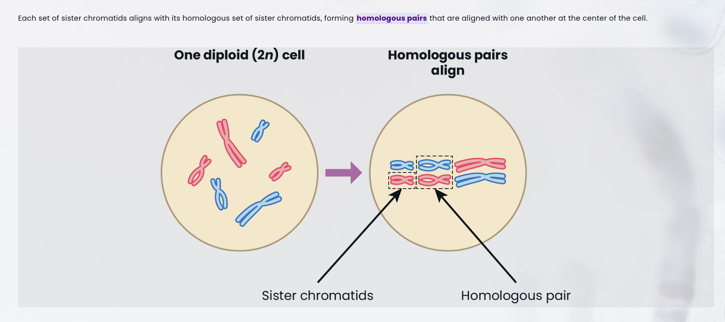 The sister chromatids created by the duplication of the maternal and paternal homologs can also be paired, forming a pair of duplicated homologous chromosomes.