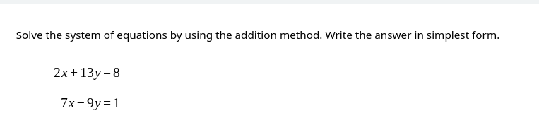 9(2x+13y) = 9(8) 13(7x-9y)=13(1)