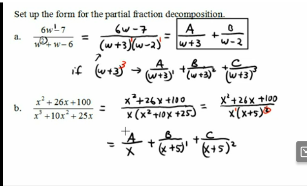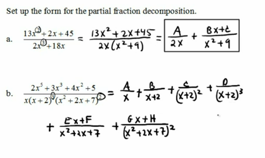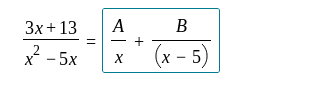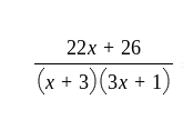 A/(x+3) + B/(3x+1) = (22x+26)/((x+3)(3x+1) A(3x+1) + B(x+3) = 22x+26 3xA + 1A + Bx +3B = 22x + 26 x(3A + B) + (1A + 3B) = 22x+26 x(3A+B) = 22x 3A+B = 22 1A+3B = 26 A = 5 Y = 7