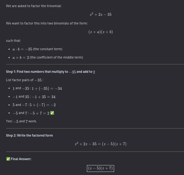 dont have to deal w all that shit. can just say its (x-5)(x+7).
