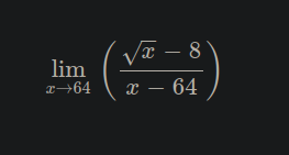 (sqrt(x)-8)/(x-64) (sqrt(x)-8)/(sqrt(x)-8)(sqrt(x)+8) 1/(sqrt(x)+8) 1/16