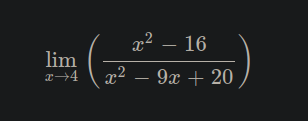 ((x+4)(x-4))/((x-5)(x-4)) (x+4)/(x-5) 4+4)/(4-5) 8/-1 -8