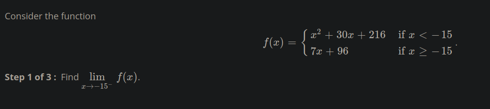 lim f(x) exists. cant have a piecewise function where it is jumping or breaking
