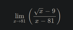 u-9/(u^2-81) u-9/(u-9)(u+9) 1/(u+9) 1/sqrt(x)+9 1/9+9 1/18