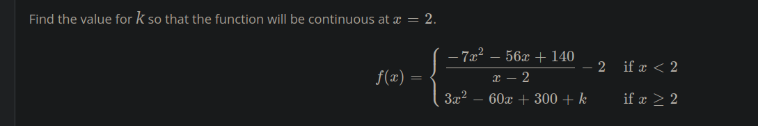 3(2)^2-60(2)+300+k = -86 3(4)-120+300+k = -86 12-120+300+k = -86 192+k = -86