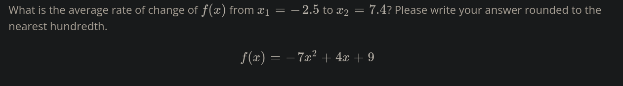-7(-2.5)^2+4(-2.5)+9 -7(6.25)-10+9 -43.75-1 -44.75