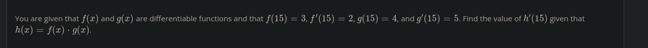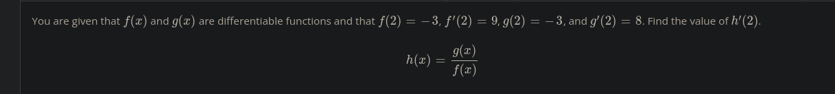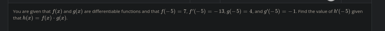 f’(x)g(x)+f(x)g’(x) (-13)(4)+(7)(-1) -52-7 -59