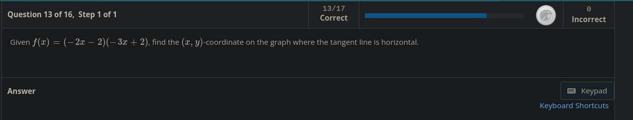f’(x)g(x)+f(x)g’(x) (-2)(-3x+2) + (-2x-2)(-3) 6x-4 + (6x+6) 6x-4+6x+6 12x+2