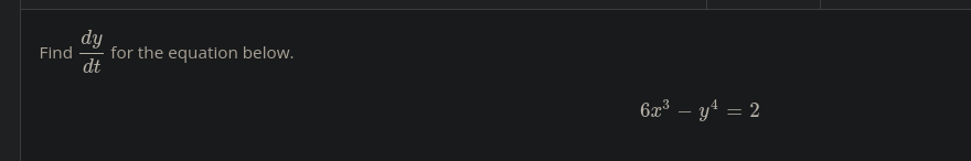 6x^3-y^4=2 18x^2dx/dt -4y^3dy/dt