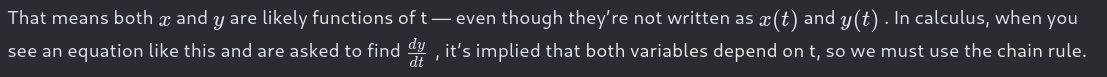 dy/dt t is for time x^2 + y^2 = 4