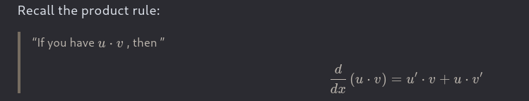 u’ = 3 v’ = dy/dx 3y + 3x * dy/dx