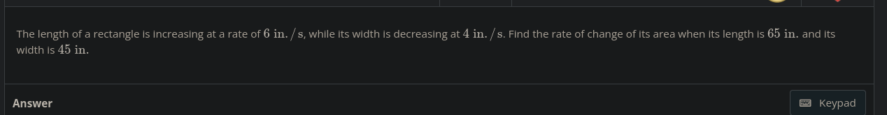 dl/dt = 6in/s dw/dt = -4in/s