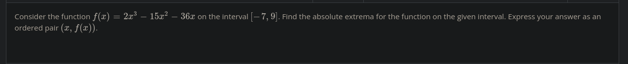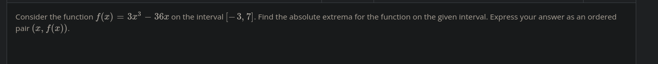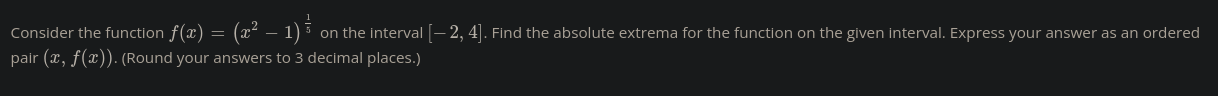 min(3/4, f(3/4)) (3/4)^4-(3/4)^3 -27/256 min(3/4,-27/256)