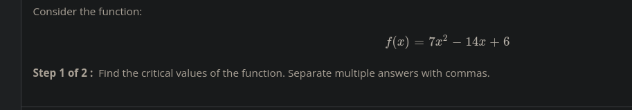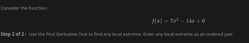 7x^2-14x+6 7(1)^2-14(1)+6 7-14+6 -7+6 -1