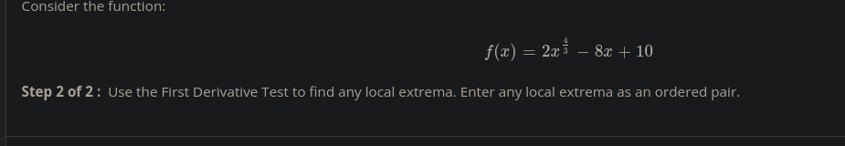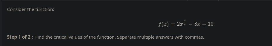 (8/3)x^(1/3) - 8 = 0 (8/3)x^(1/3) = 8 x^(1/3) = 8/(8/3) cbrt(x) = 8/(8/3) x = (8/(8/3))^(3) x = 27