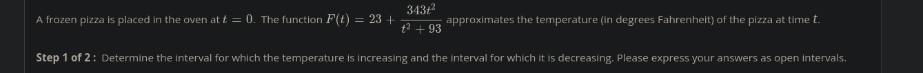 686t(t^2+93) - (343t^2)(2t) / (t^2+93)^2 686t^3 + 63798t - 686t^3 / (t^2+93)^2 63798t / (t^2+93)