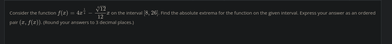 12 4(12)^(1/4) - (qdrt(12)/12)(12) 5.58362
