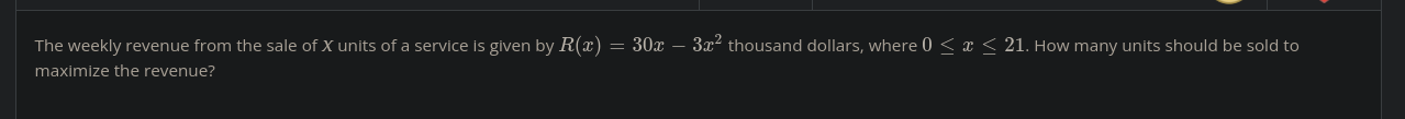 21 30(21)-3(21)^2 630-3(441) 630-1323 -693 maximum 5, they should sell 5.