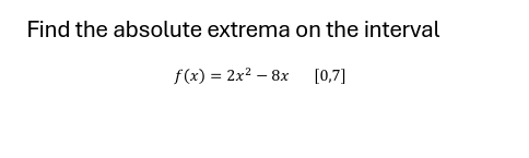 absolute minimum at 2, -8 absolute maximum at 7, 42