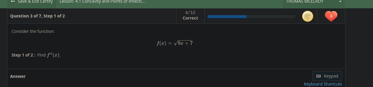 f = (9/2)x^(-1/2) g = 9x+7