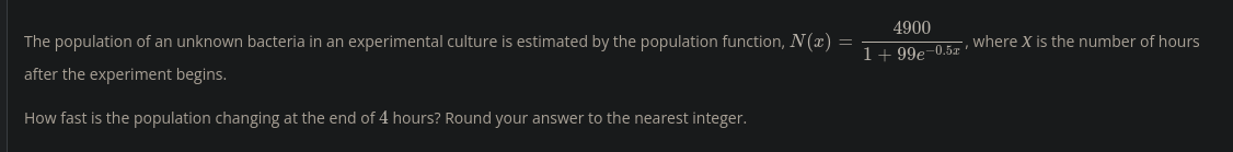 -242550e^-.5(4)/(1+99e^-.5(4))^2 -242550e^-2/(1+99e^-2)^2 -158