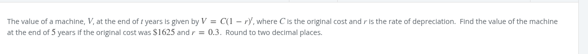 1625(1-.3)^5 1625*(.7)^5 273.11375 273.11