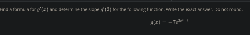 f = 7x^2 g = 7e^3x + 5 f’ = 14x g’ = 7e^3x * 3