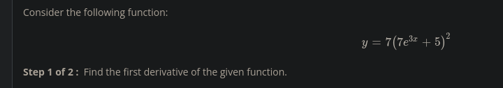 14(7e^3x+5) * 7e^3x * 3 14(7e^3x+5) * 21e^3x 294(7e^3x+5)(e^3x)