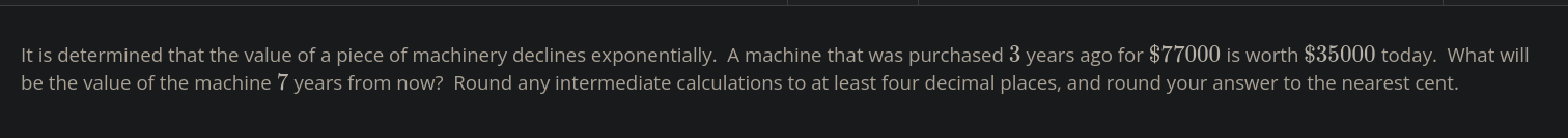 x = 77000e^(-10(0.262819120121)) x = 5560.08958556 x = 5560.09