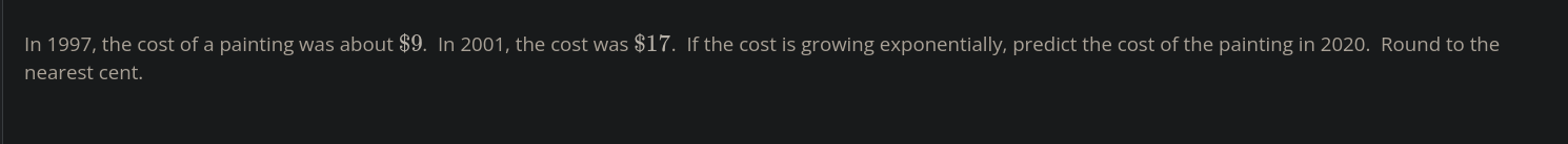 y = Ce^kt k = .041 y = 7700e^.41t t = 5 y = 7700e^(.415) 9452 14400 = 7700e^(.41x) 1.87012987 = e^(.41*x) ln(1.87012987) = .41x ln(1.87012987)/.41 = x 15 years
