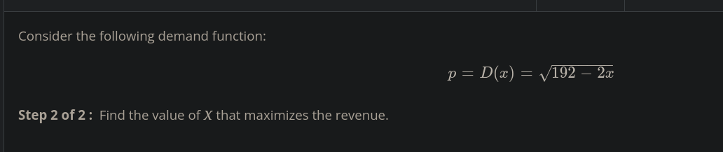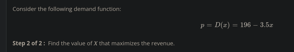 revenue is increasing when derivative is positive revenue is demand * x revenue is increasing when R’ is positive R’ = D’(x)x + D(x)