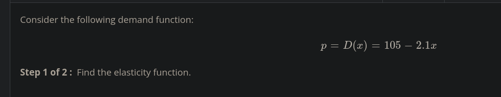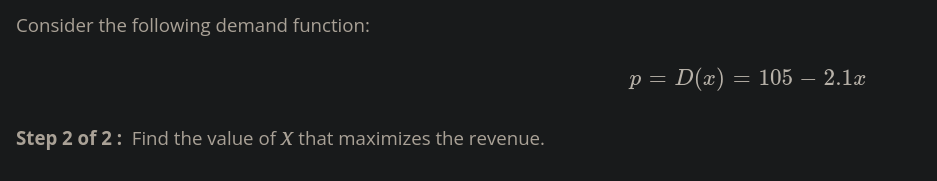 -1/x * D / D’ D = 105-2.1x D’ = -2.1