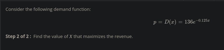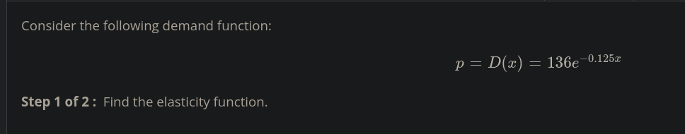 -1/x * 136e^(-.125x) / ((136e^(-.125x)) * -.125)