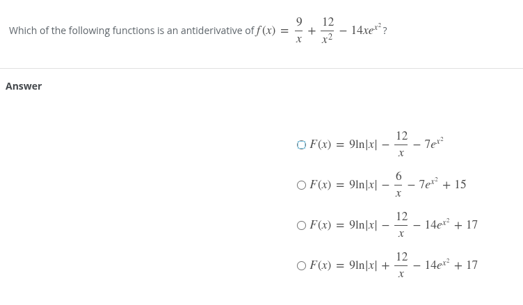 so it has to be a -7e^(x^2) one so there is only one option.