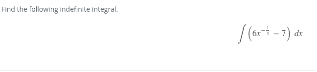 6x^(-1/3) - 7 (6)/(2/3)x^(2/3) - 7x (6)(3/2)x^(2/3) - 7x (18/2)x^(2/3) - 7x 9x^(2/3) - 7x