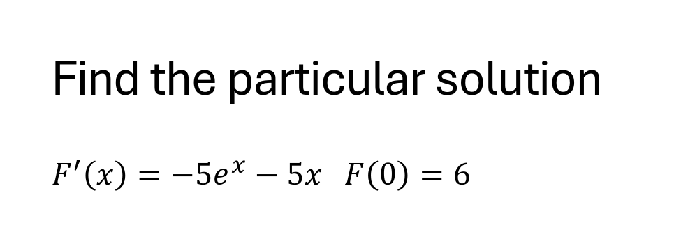integral(-5e^x - 5x) -5e^x - 5x^2/2 -5e^x - 2.5x^2 + c