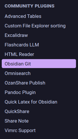 the crucial ones you look at are: Excalidraw Omnisearch Obsidian Git QuickShare ( none of these quick note sharing platforms have support for images, so keep that in mind, but it is easier to just generate links for each note to send to people than to host your own webpage for them. ) Pandoc Plugin ( allows you to export your notes to other formats nicer )
