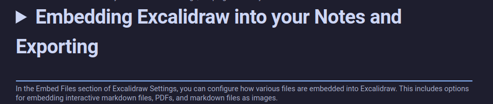 - you cannot embed excalidraw files themselves into your notes, so you need to choose the auto export to svg option in the excalidraw plugin’s settings
