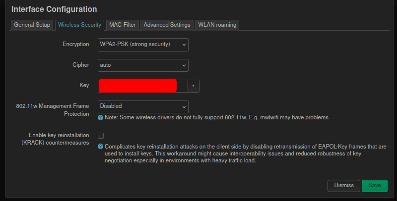 set Key to your password. Key just means password. dont worry about any of the other options. Save. Do this on each SSID on each access point.