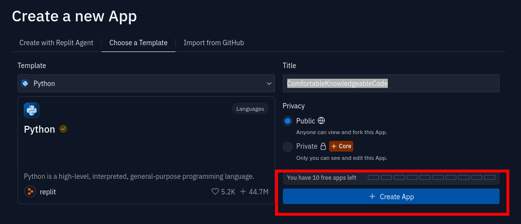 choose a name if you want then hit create app