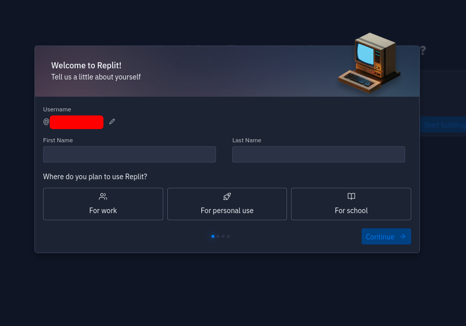 I said: First name hello last name there using for personal use hit next