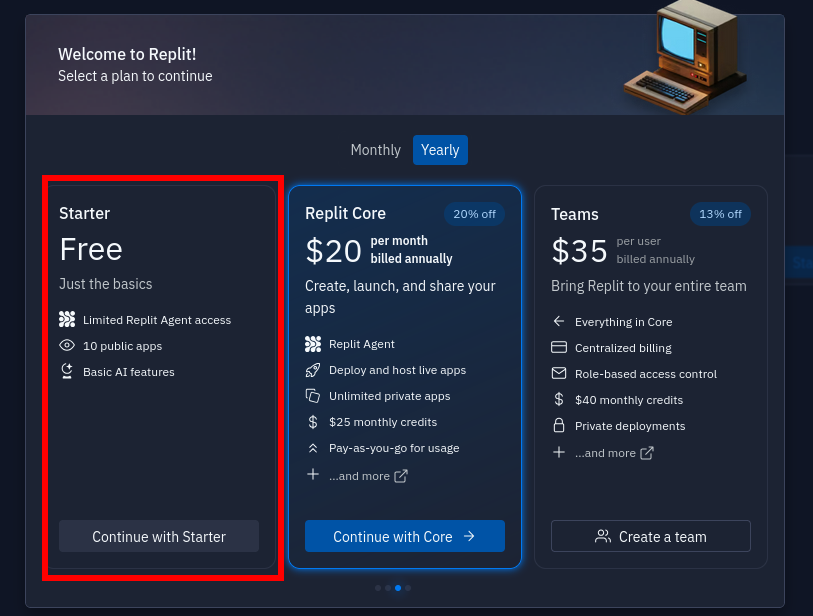 choose the starter free plan